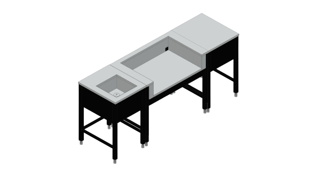Ulkokeittiöön sisältyy allasmoduuli, grillimoduuli ja työtasomoduuli (50cm).