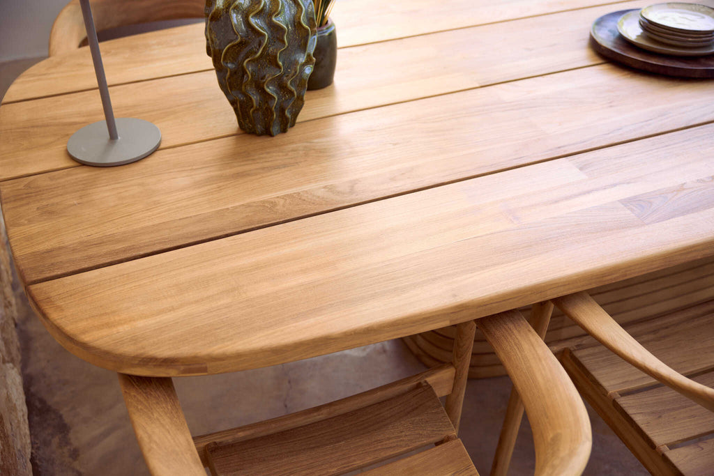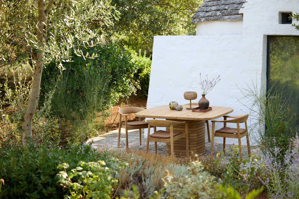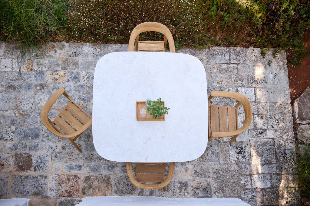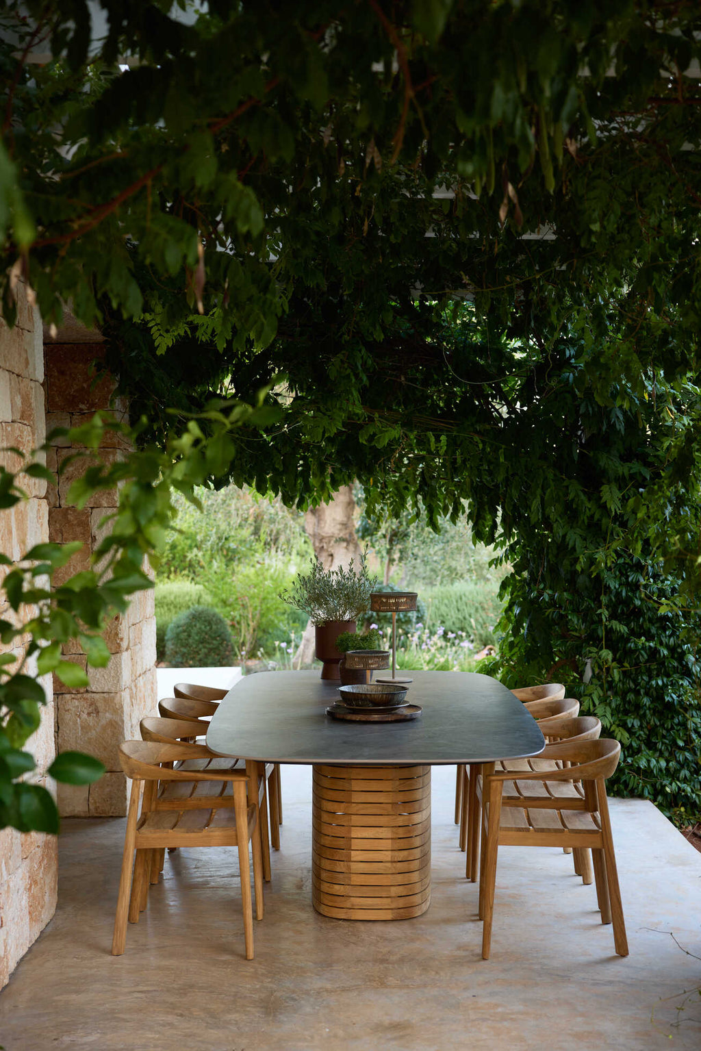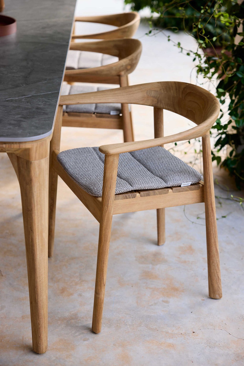Majestic-tuoli yhdistää veistoksellisen selkeyden ja hienostuneen eleganssin. Kartionmuotoiset jalat, puhtaat linjat ja hillitty siluetti luovat ajattoman ilmeen, ja sertifioitu tiikki tuo luonnollista lämpöä niin sisä- kuin ulkotiloihin.