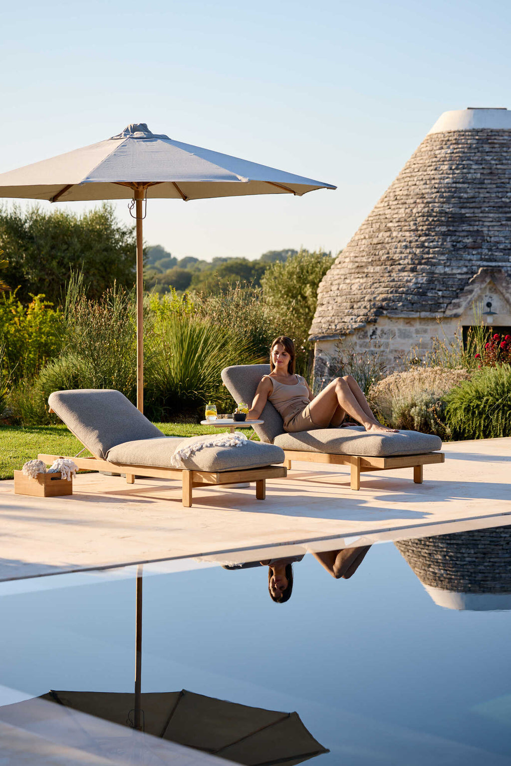 Vista-aurinkotuoli edustaa modernia ja minimalistista muotoilua, ja se on valmistettu sertifioidusta Grade A -tiikistä. Selkeät linjat ja miellyttävä pinta tuovat ulkotiloihin hillittyä ylellisyyttä ja kutsuvat rentoutumaan niin altaan äärellä, omalla terassilla kuin viimeistellyissä hotellimiljöissä. Kestävä tiikki takaa pitkäikäisyyden ja ajattoman ilmeen, ja säädettävä selkänoja mahdollistaa juuri itselle sopivan lepoasennon.